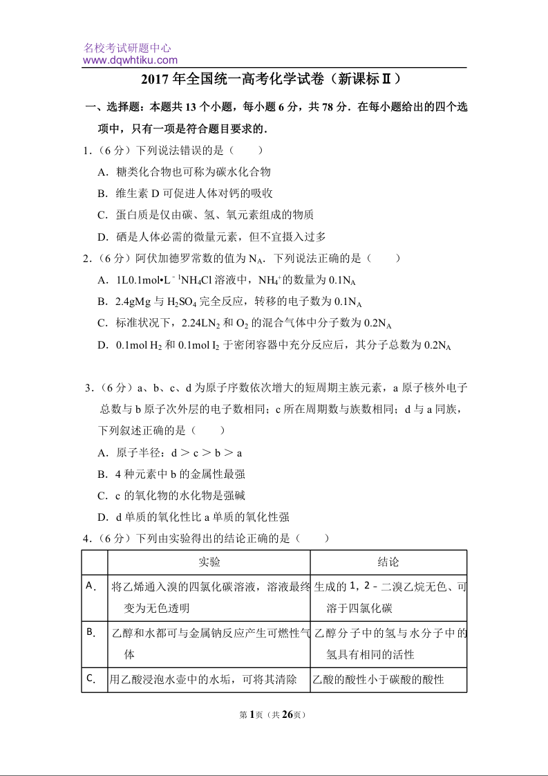 2017年全国统一高考化学试卷(新课标ⅱ)(含解析版)