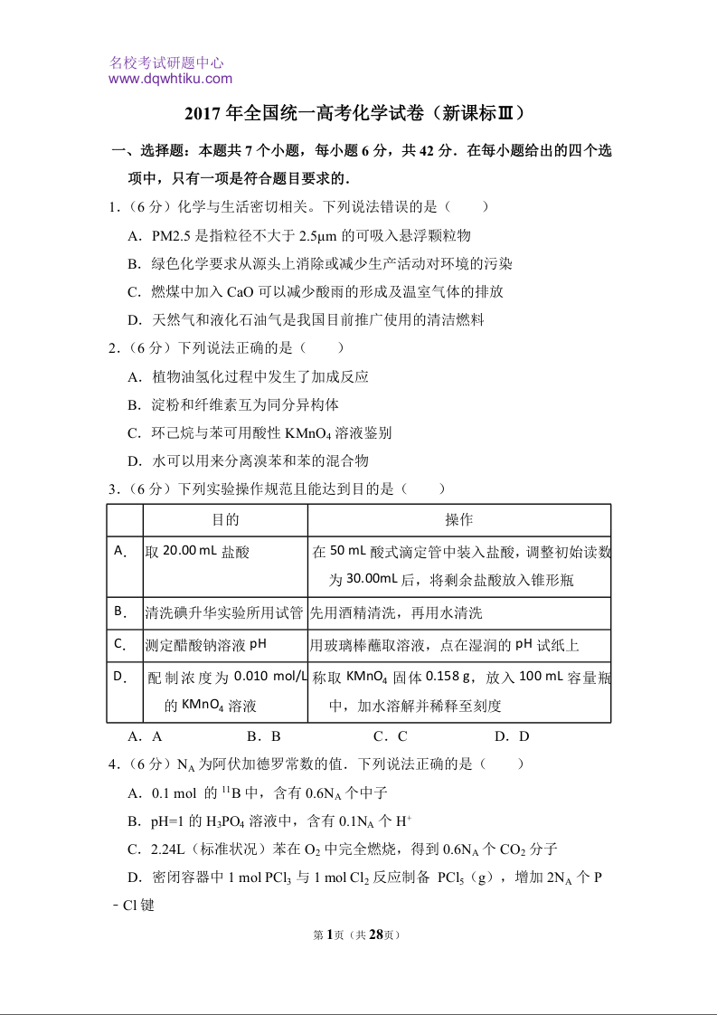 2017年全国统一高考化学试卷(新课标ⅲ)(含解析版)
