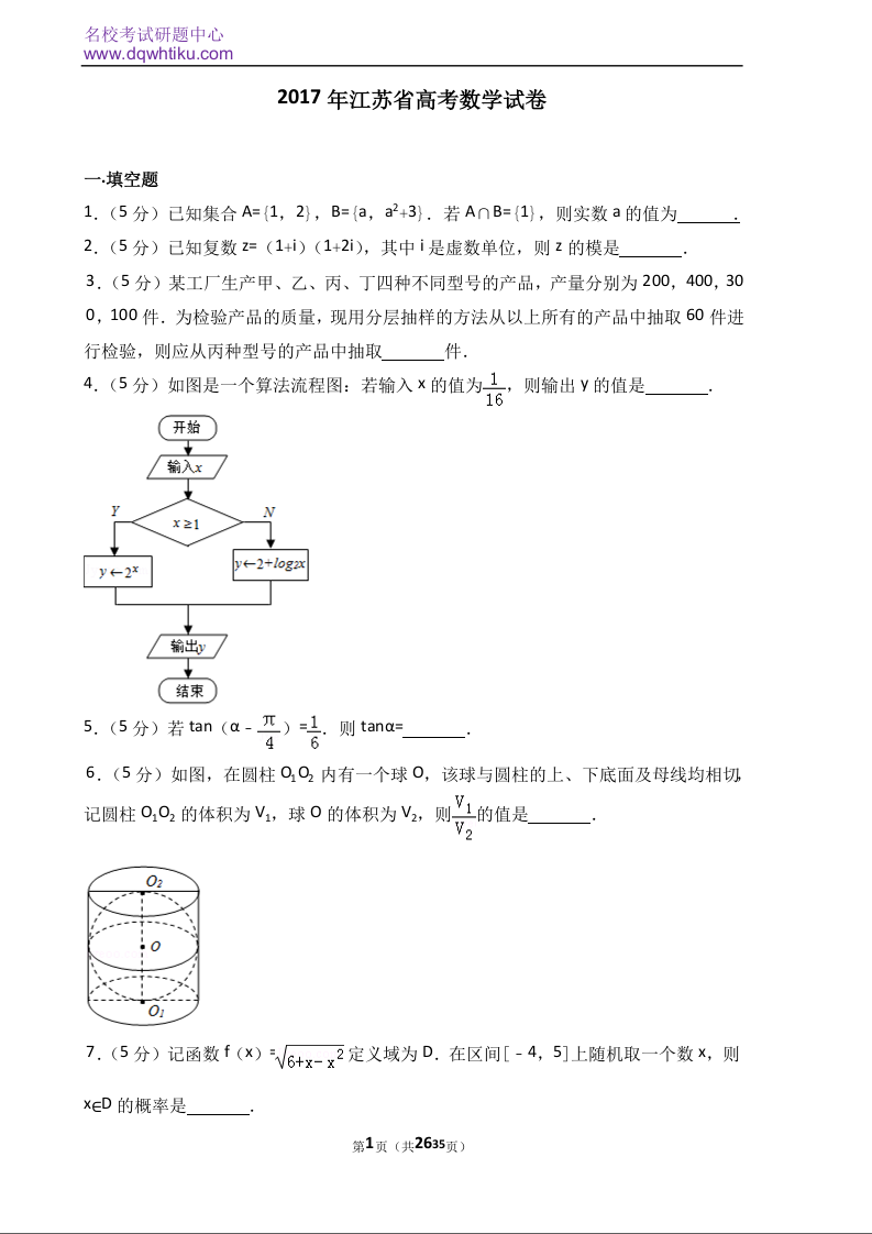 2017年江苏高考数学试题及答案