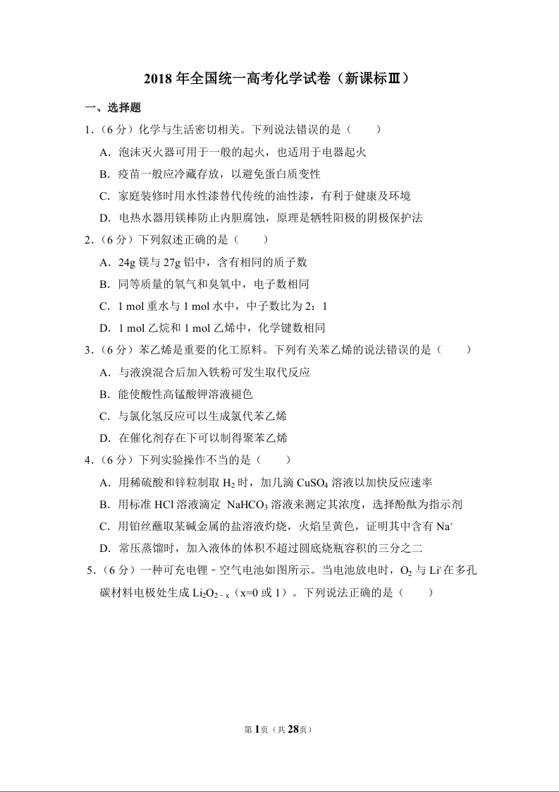 2018年全国统一高考化学试卷(新课标ⅲ)(含解析版)