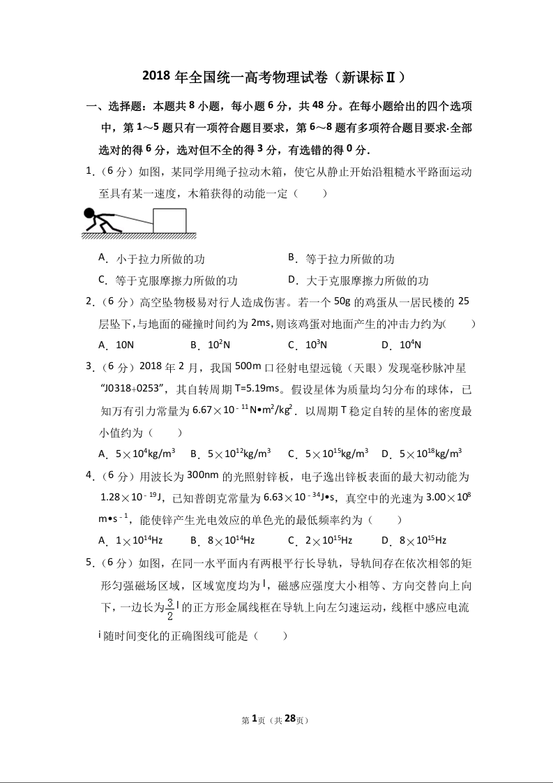 2018年全国统一高考物理试卷(新课标II)(含解析版)