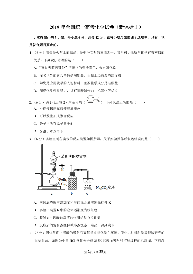 2019年全国统一高考化学试卷(新课标ⅰ)(含解析版)
