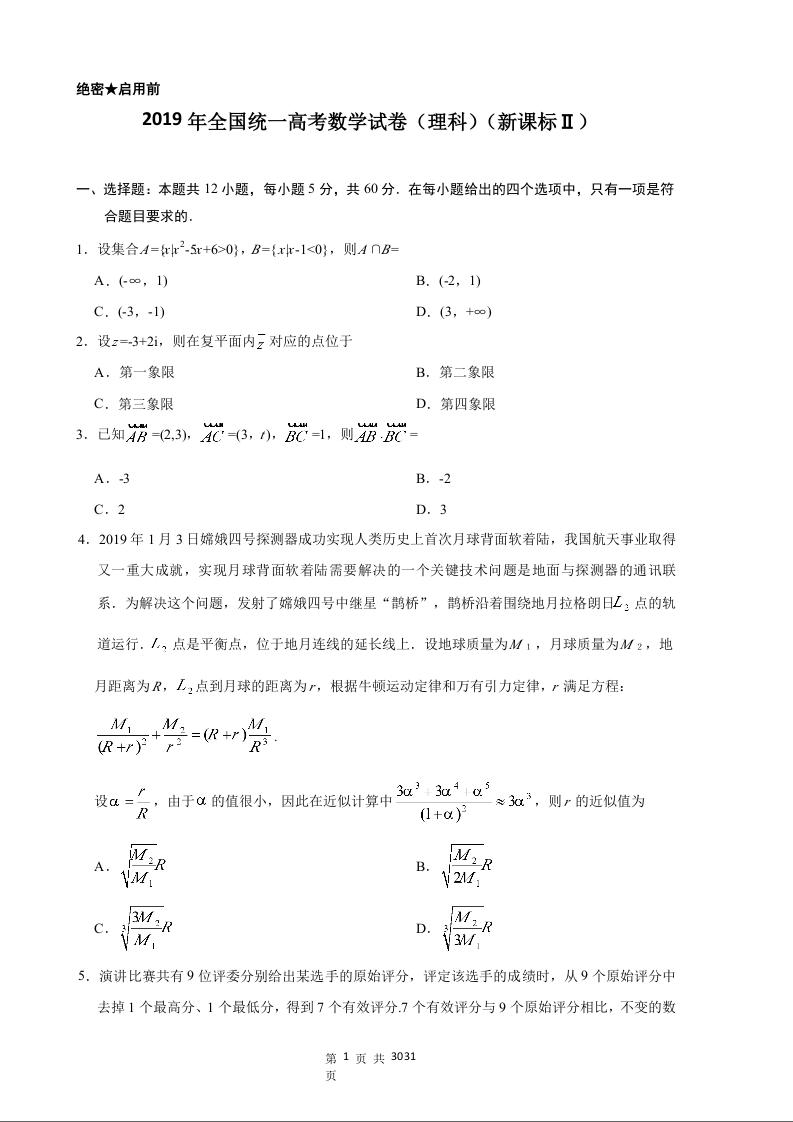 2019年全国统一高考数学试卷(理科)(新课标ⅱ)(含解析版)