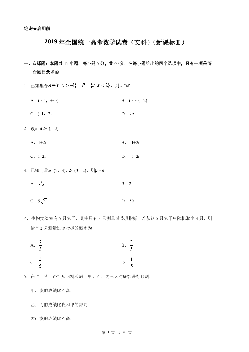 2019年全国统一高考数学试卷(文科)(新课标ⅱ)(含解析版)