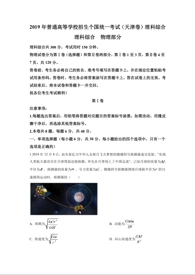 2019年天津高考物理试题及答案