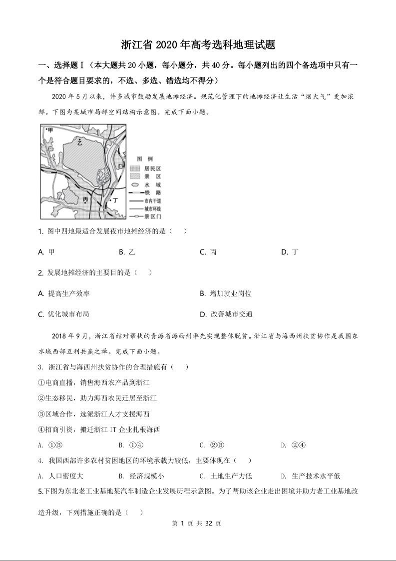 2020年地理高考真题--浙江7月选考