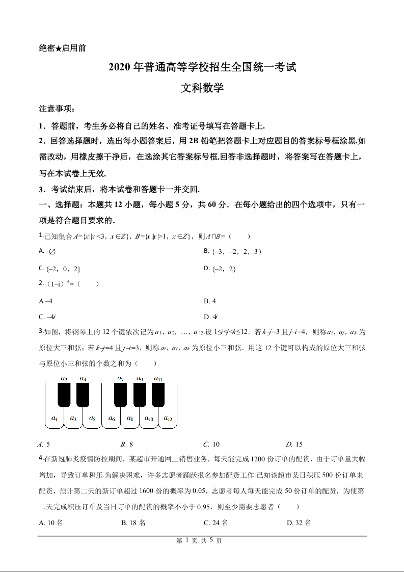 2020年高考真题——数学试卷(文科)(新课标Ⅱ)