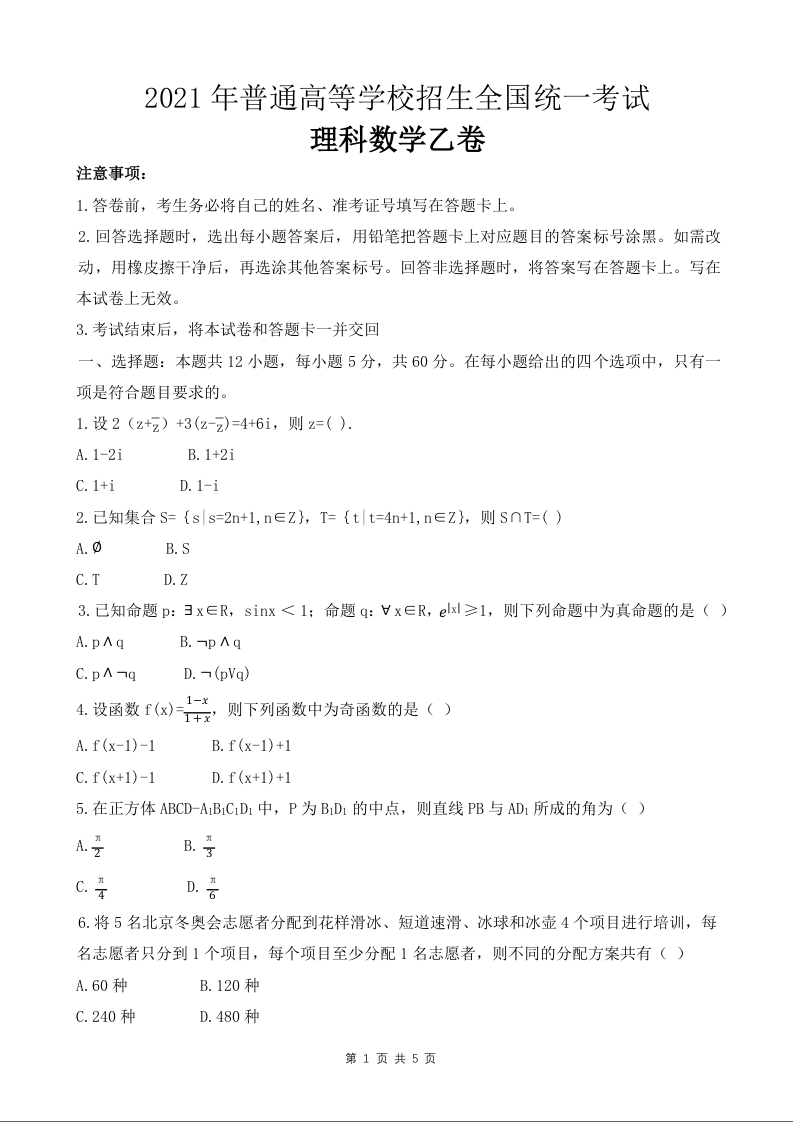 2021年全国统一高考数学试卷(理科)(新课标I)