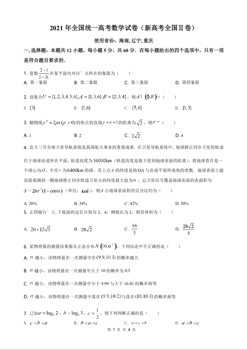 2021年全国新高考II卷数学试题