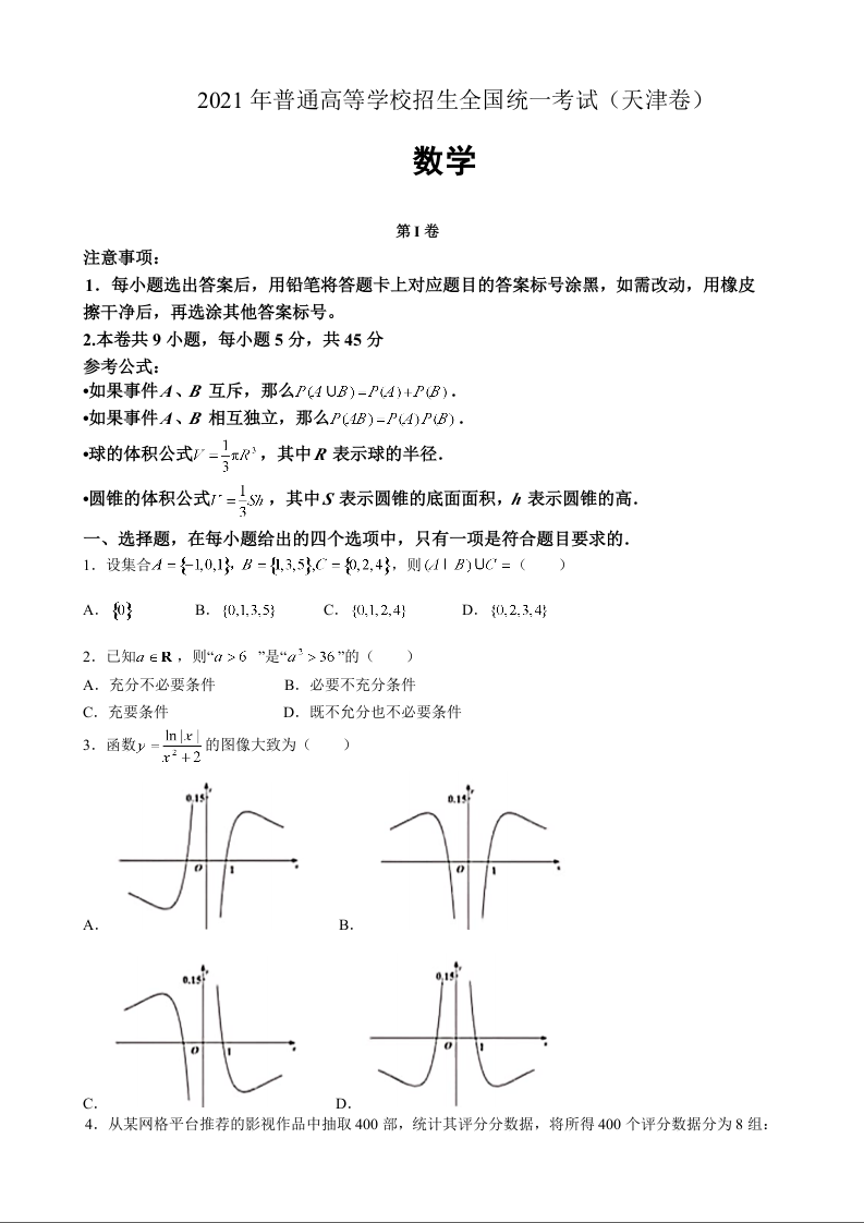 2021年天津市高考数学试卷
