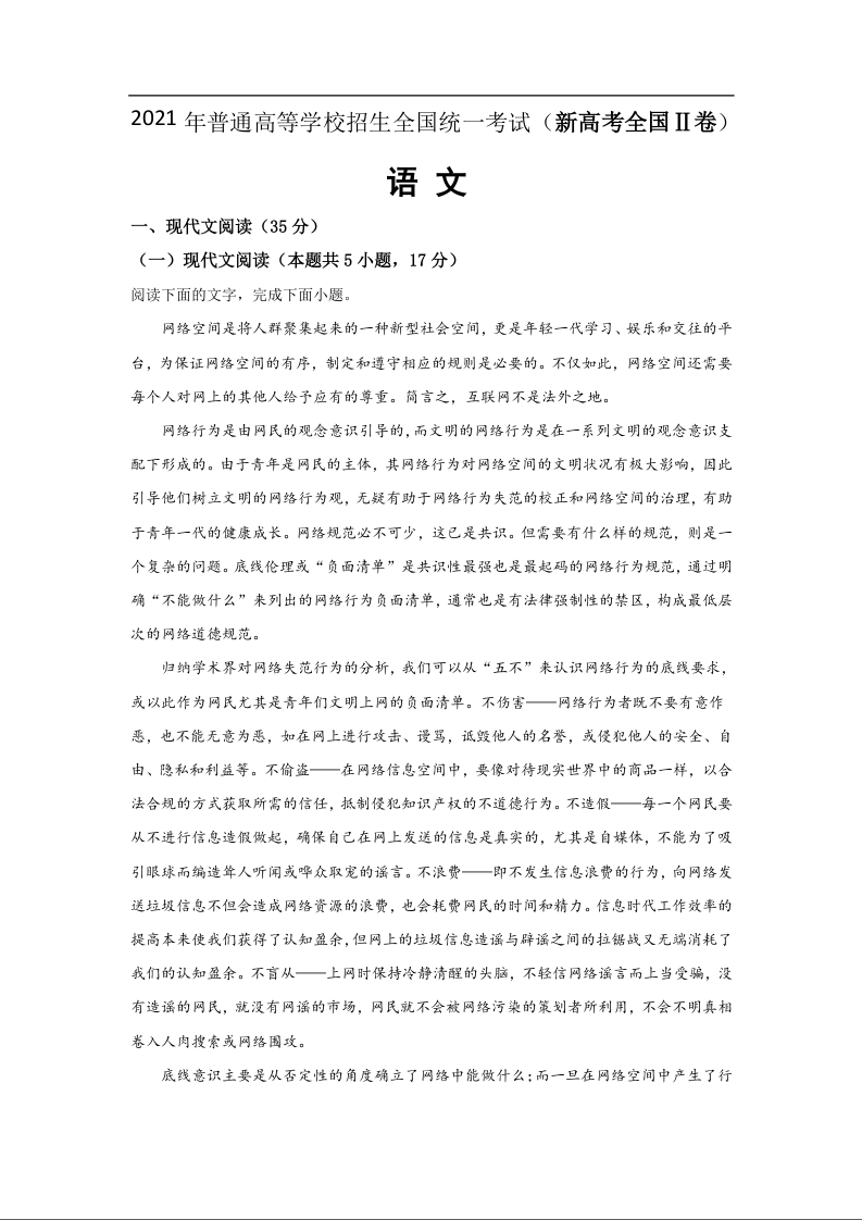 2021年新高考2高考语文(解析版)
