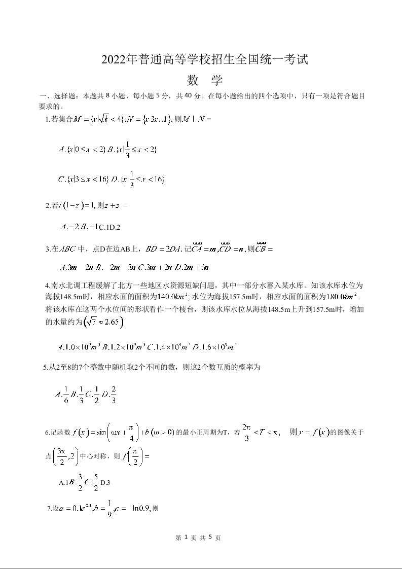 2022年高考真题——数学(新高考Ⅰ卷)试卷