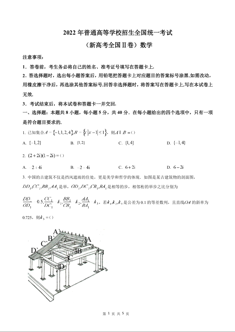 2022年高考真题——数学(新高考II卷)试卷