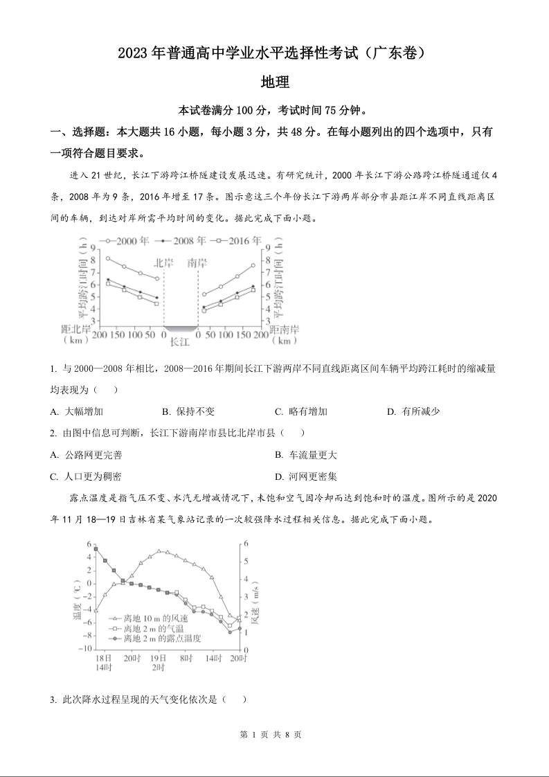 2023年地理高考真题--广东卷
