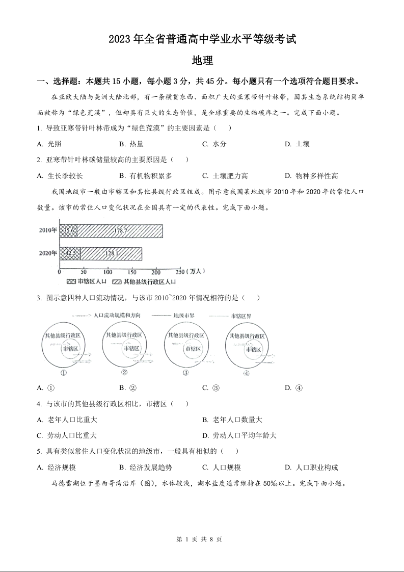 2023年地理高考真题--山东卷