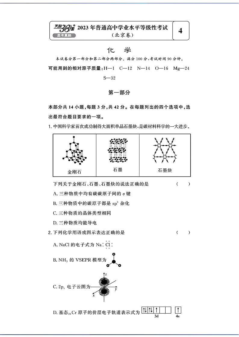 2023年化学高考真题及参考答案--北京卷