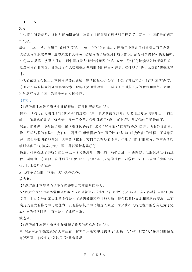【新课标II卷】2024年语文参考答案