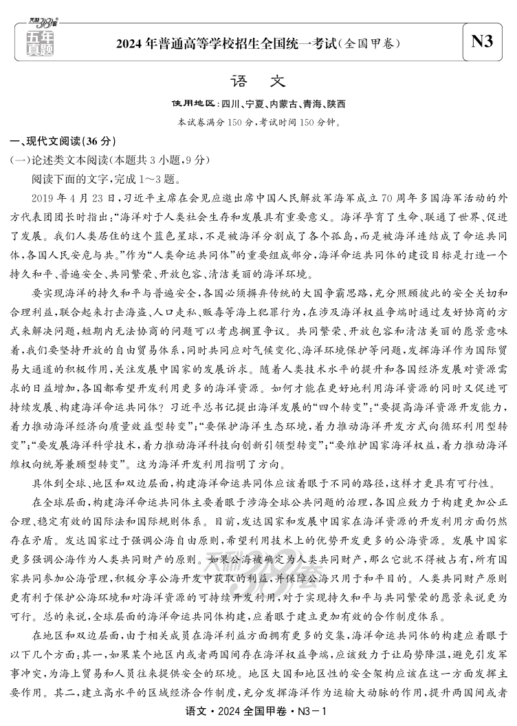 2024年全国高考甲卷语文试题