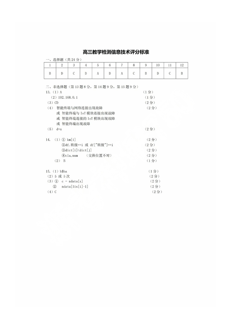 浙江省2025届高三杭州一模技术答案