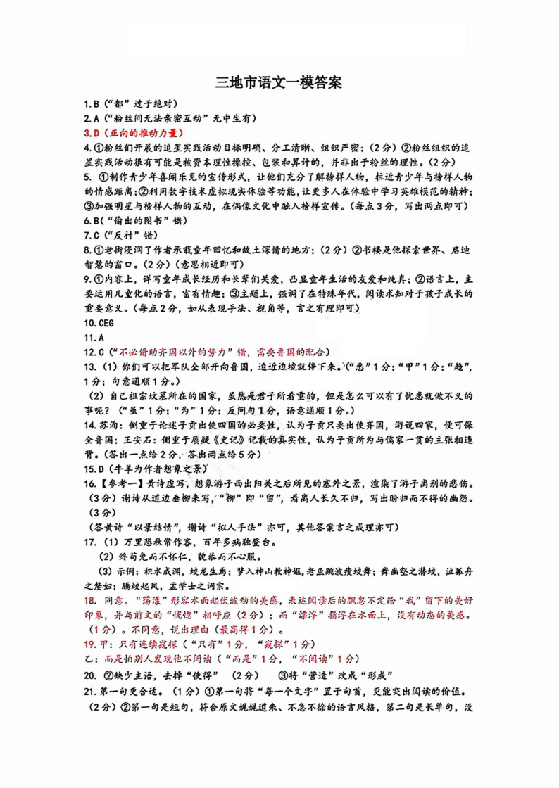 浙江省湖丽衢2024年11月三地市教学质量检测试卷+语文答案