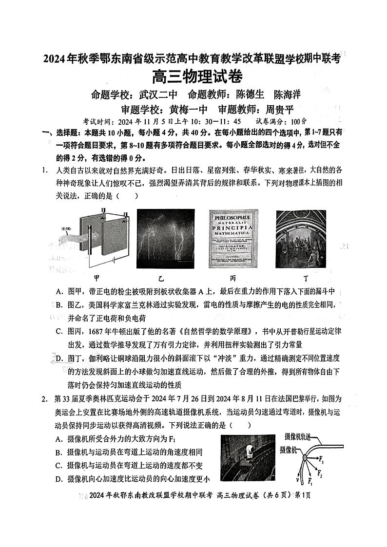 2025届湖北省鄂东南示范高中高三11月期中联考物理试卷