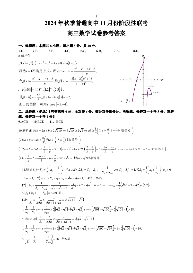 2025届湖北省鄂东协作体秋季普通高中11月份高三阶段性联考数学答案