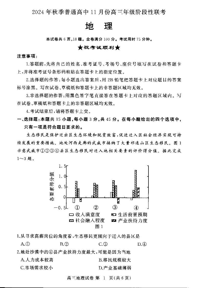 2025届湖北省鄂东协作体秋季普通高中11月份高三阶段性联考地理试卷