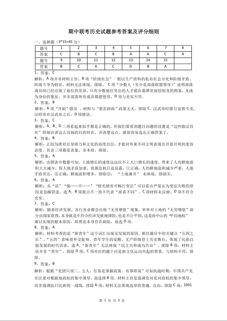 2025届湖北省鄂东协作体秋季普通高中11月份高三阶段性联考历史答案
