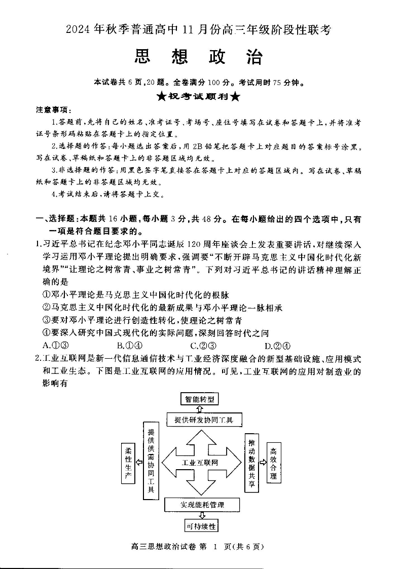2025届湖北省鄂东协作体秋季普通高中11月份高三阶段性联考政治试题