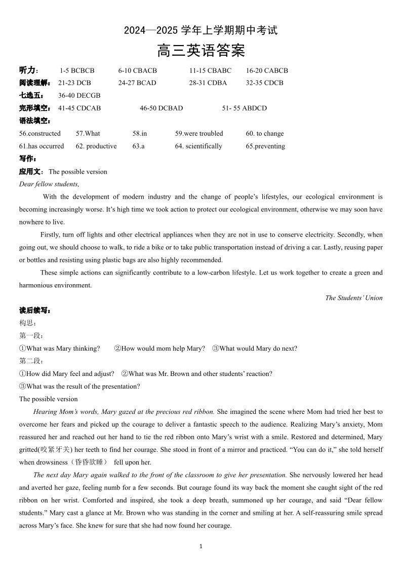 湖北省新高考协作体2024-2025学年高三上学期11月期中考试+英语答案