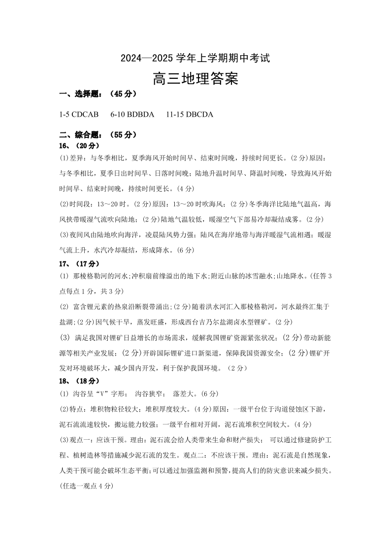 湖北省新高考协作体2024-2025学年高三上学期11月期中考试+地理答案