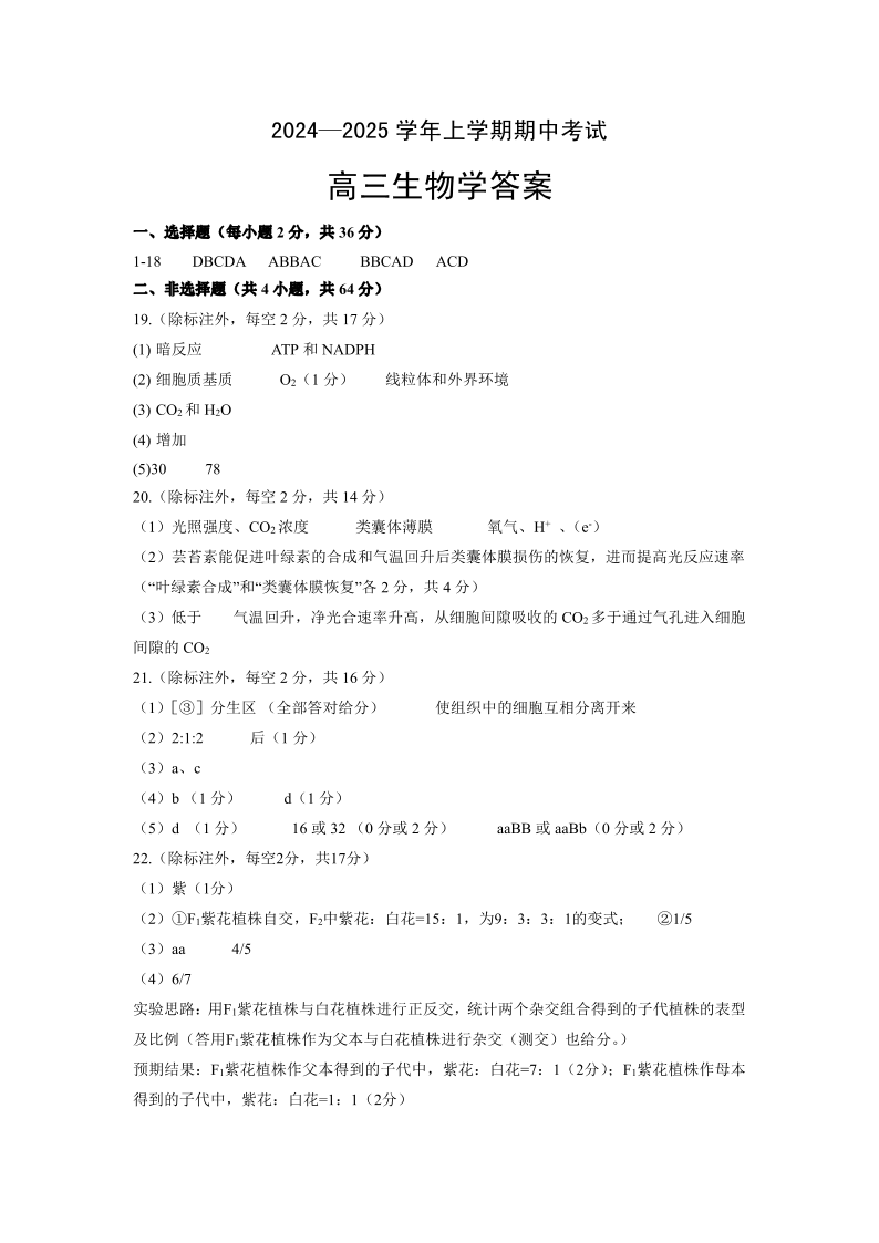 湖北省新高考协作体2024-2025学年高三上学期11月期中考试+生物答案