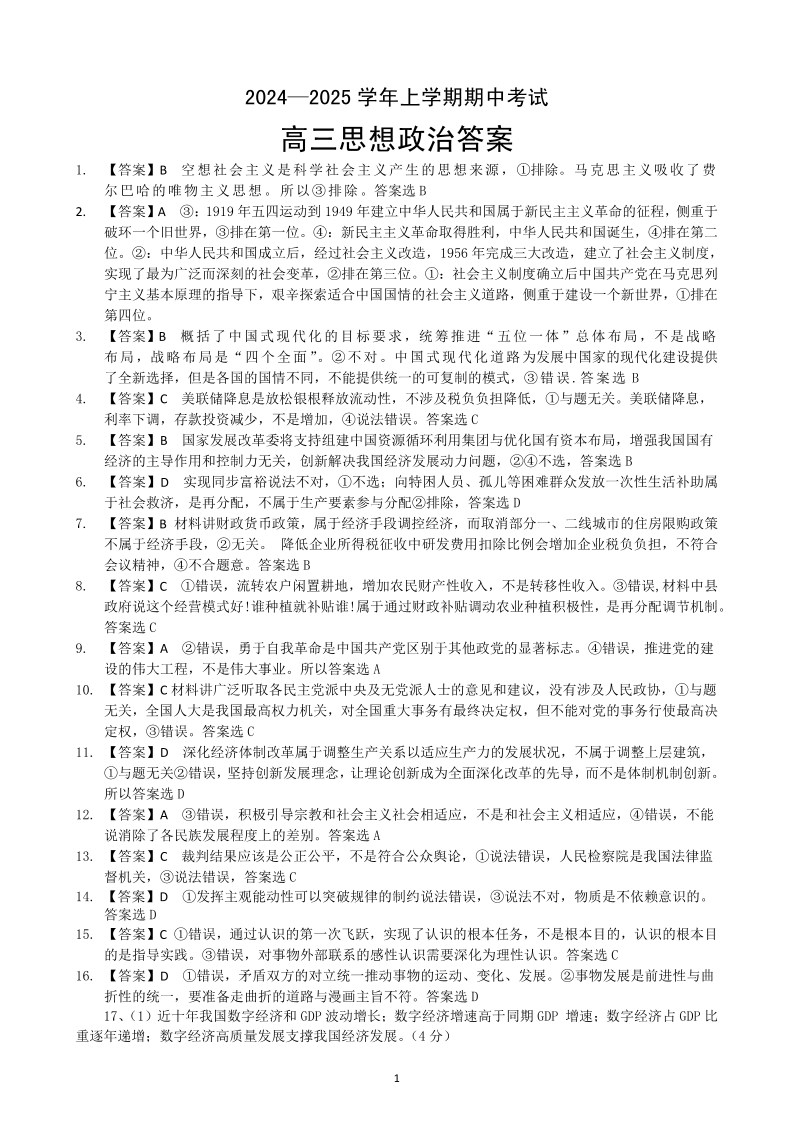 湖北省新高考协作体2024-2025学年高三上学期11月期中考试+政治答案