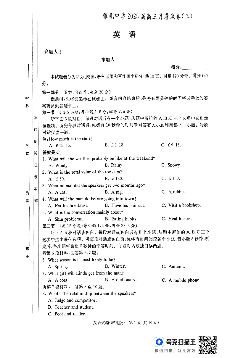Copyright © 2026 名校考试研题中心资源平台 All rights reserved 鲁ICP备2024123781号-1