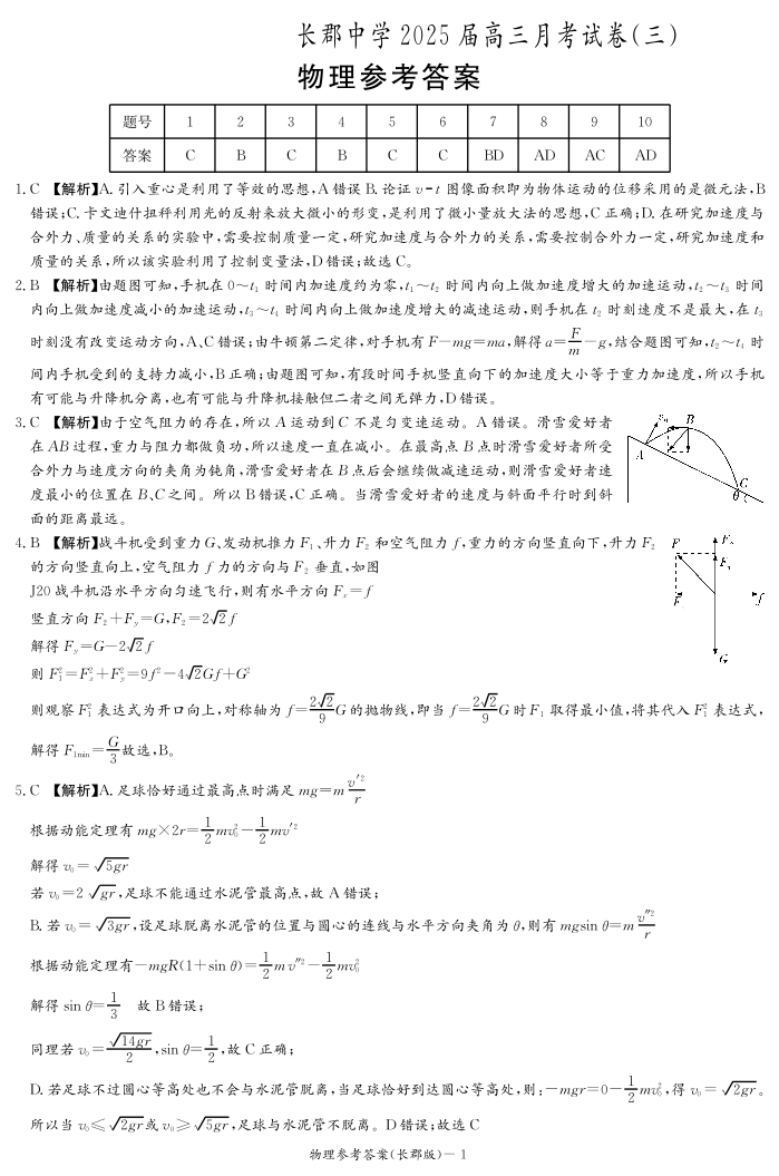 湖南省长沙市长郡中学2024-2025学年高三上学期第三次月考物理答案