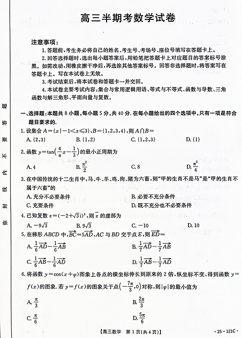 【福建卷】福建省漳州宁德龙岩三市2025届高三百校半期11月联考联考数学试卷