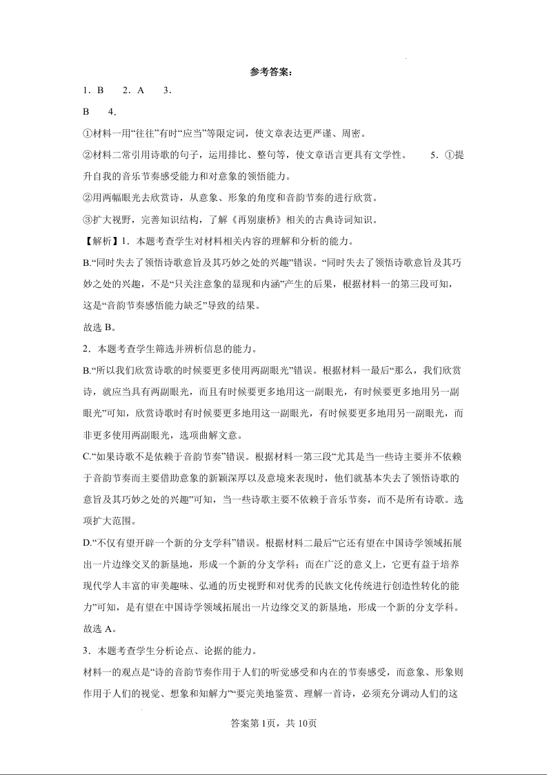 泉州市2025届高三毕业班五校联考+语文答案
