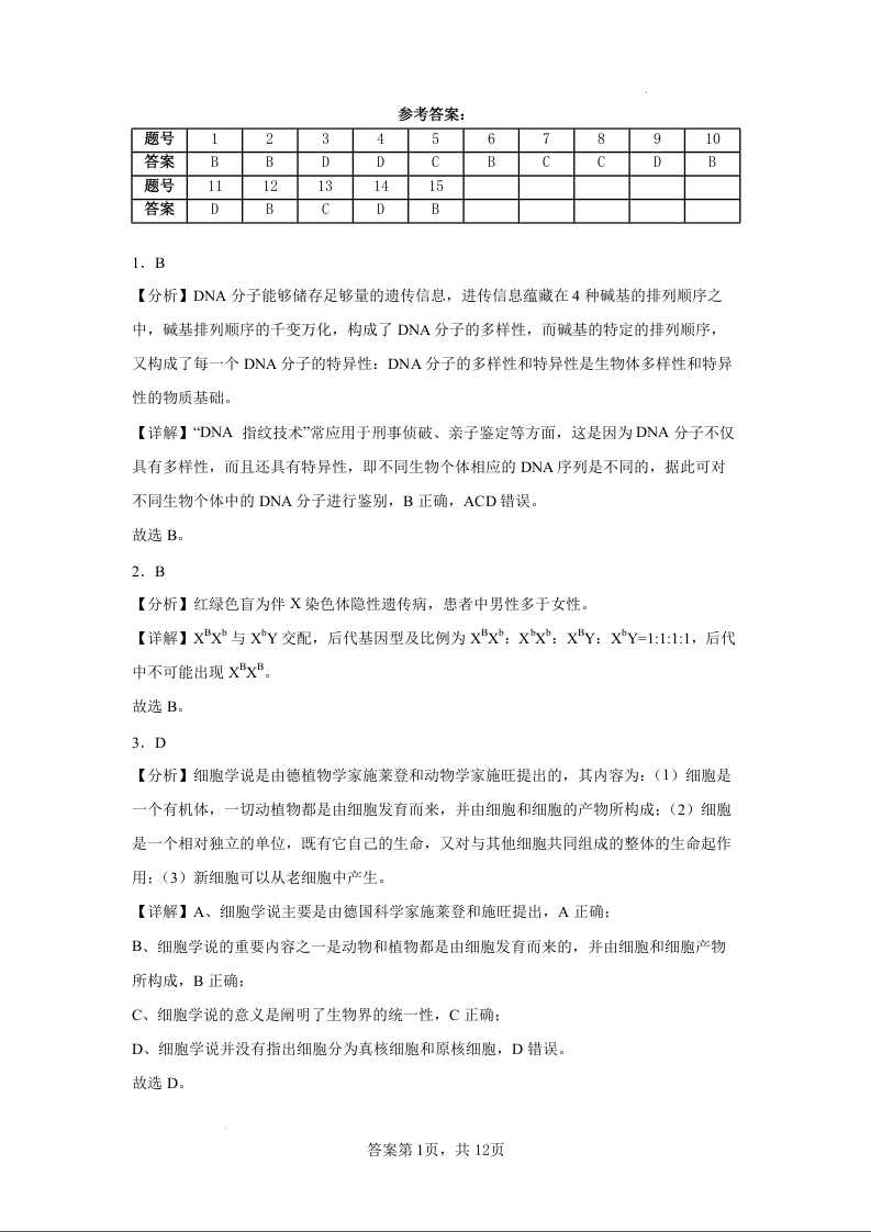 泉州市2025届高三毕业班五校联考+生物答案