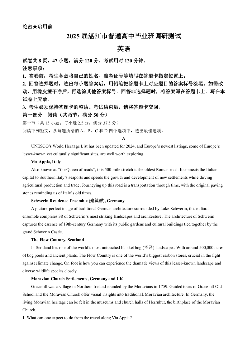 2025届湛江市普通高中毕业班10月调研测试+英语