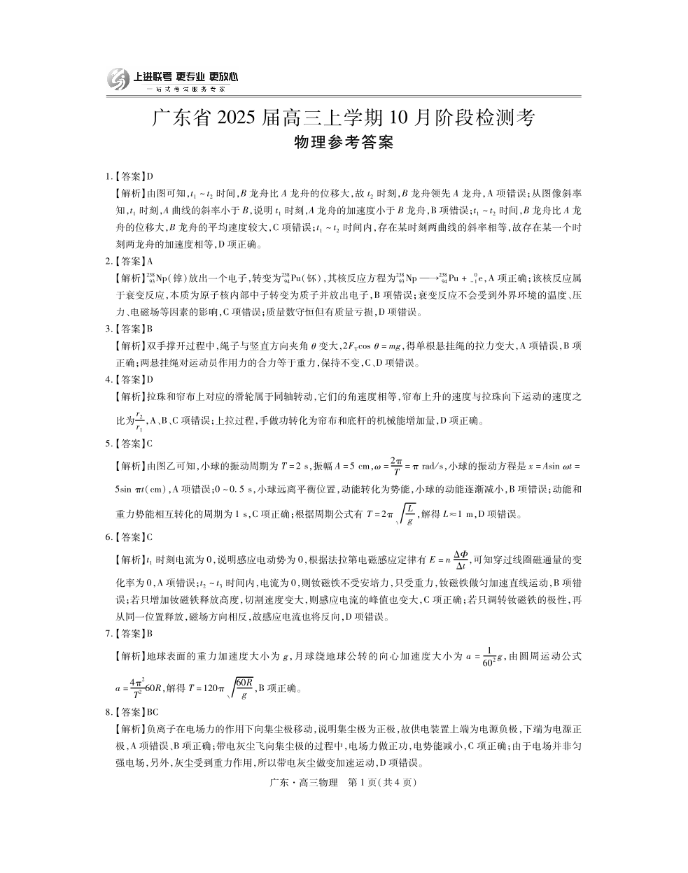 广东省2025届高三上学期10月阶段检测考+物理答案