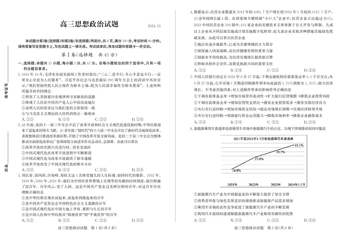 【山东卷】山东省德州市2024.11高三年级期中统一检测政治
