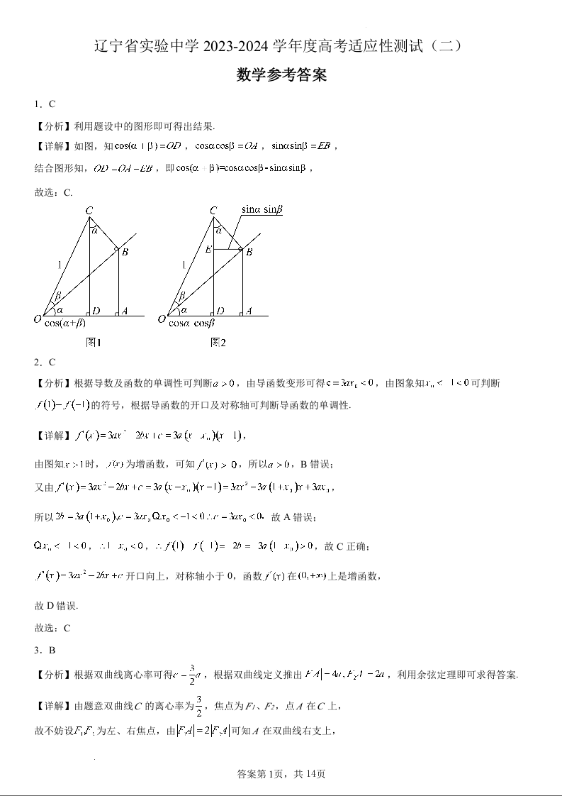 辽宁省实验中学2023-2024学年度高考适应性测试(二)数学参考答案