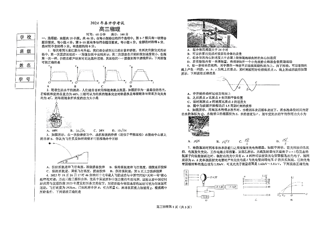 辽宁省辽东南协作体2023-2024学年高三下学期开学考试 物理