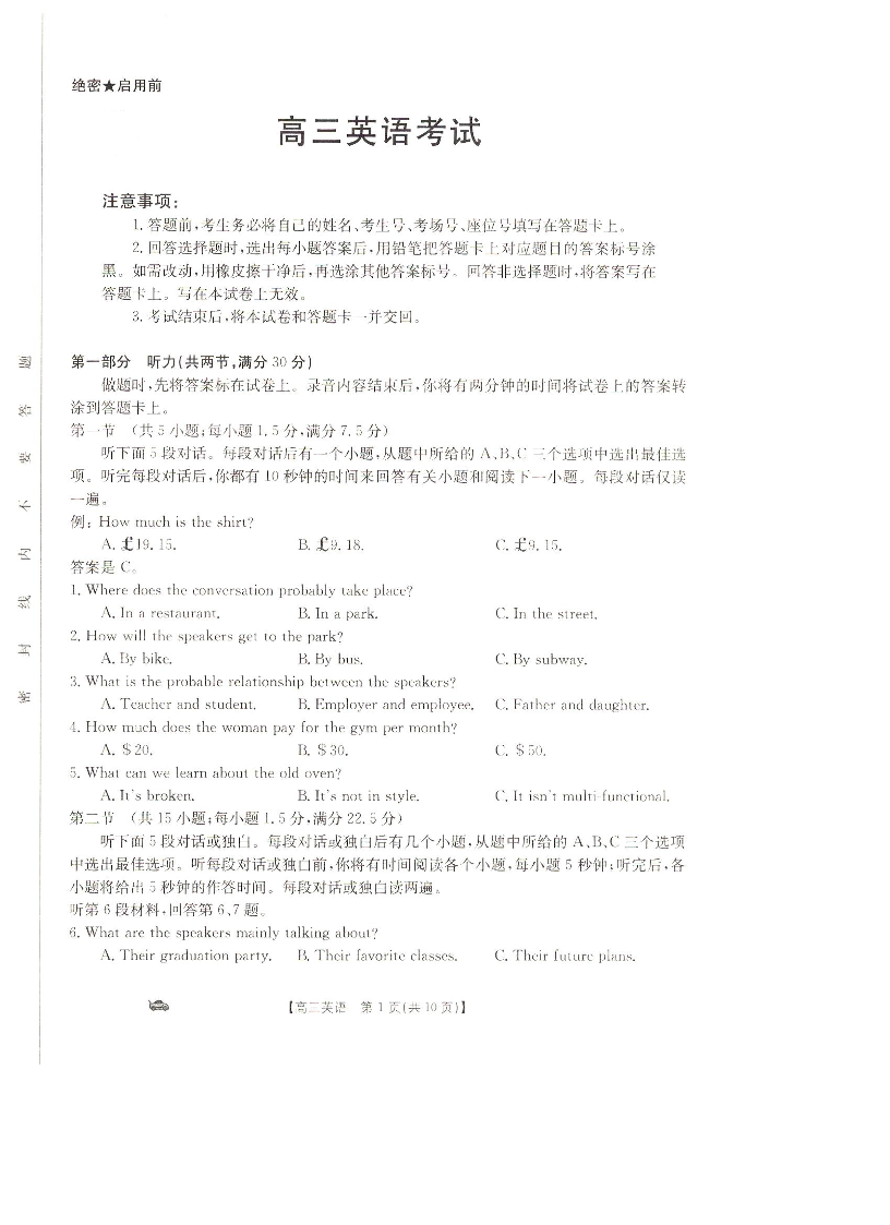 辽宁省抚顺市六校协作体2023-2024学年高三上学期期末考试 英语