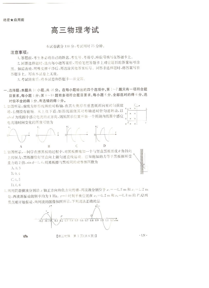 辽宁省抚顺市六校协作体2023-2024学年高三上学期期末考试 物理