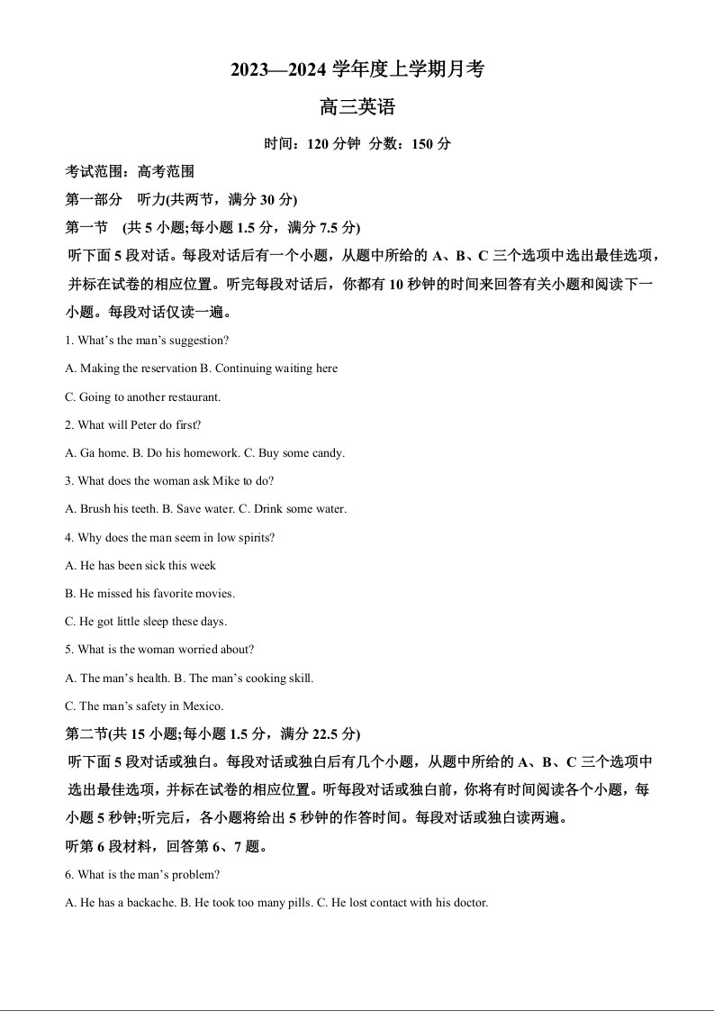 辽宁省辽东南协作校2023-2024学年高三上学期12月月考试题 英语