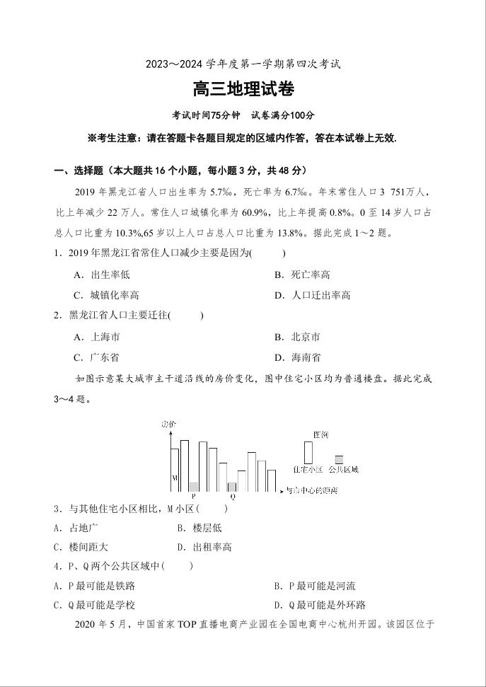 辽宁省北镇市第二高级中学、第三高级中学2023-2024学年高三上学期第四次月考试题 地理