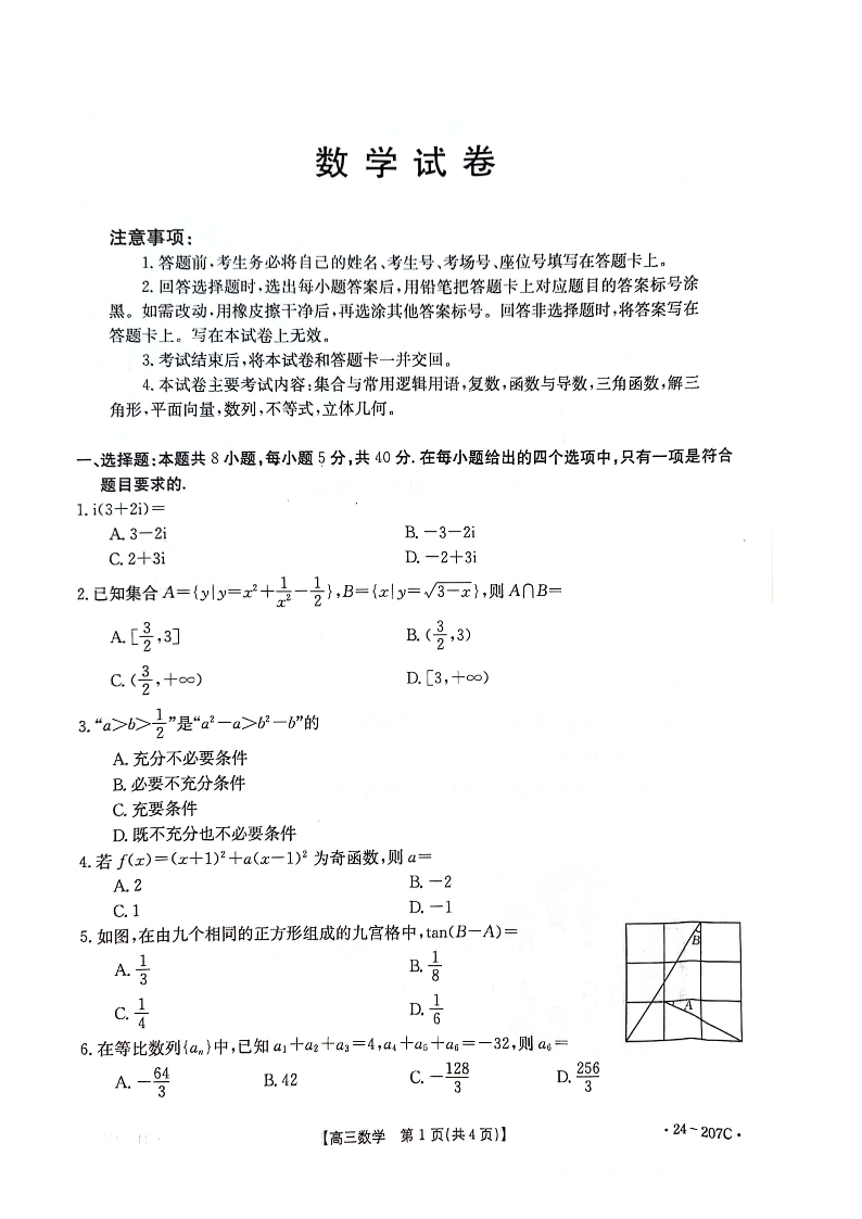 辽宁省部分学校2023-2024学年高三上学期12月考试 数学
