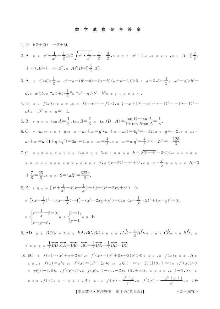辽宁省部分学校2023-2024学年高三上学期12月考试 数学答案