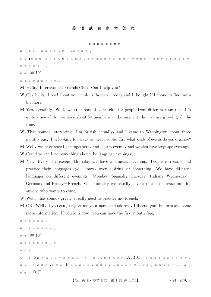 辽宁省部分学校2023-2024学年高三上学期12月考试 英语答案